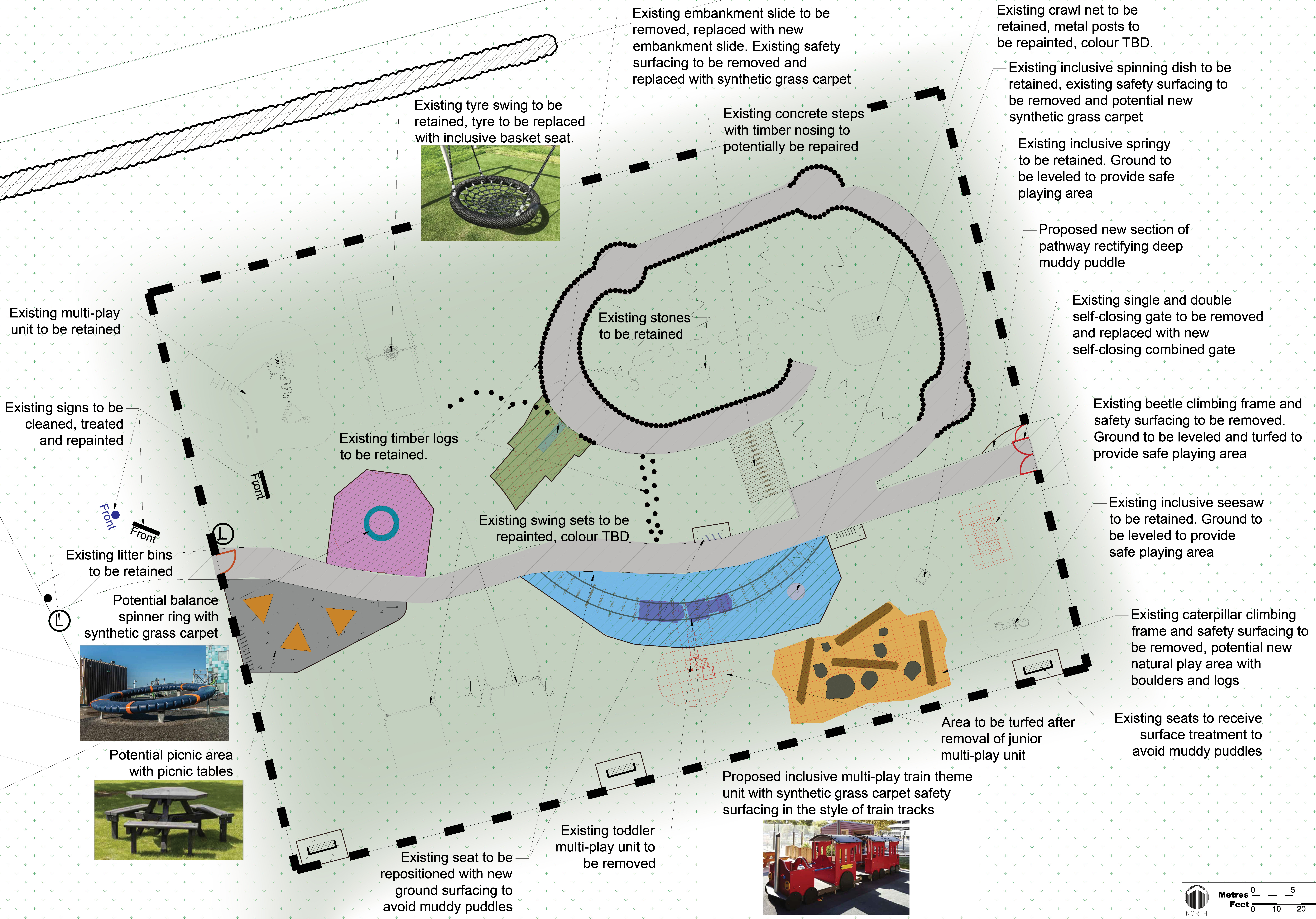 - Potential new inclusive play equipment to the play area;